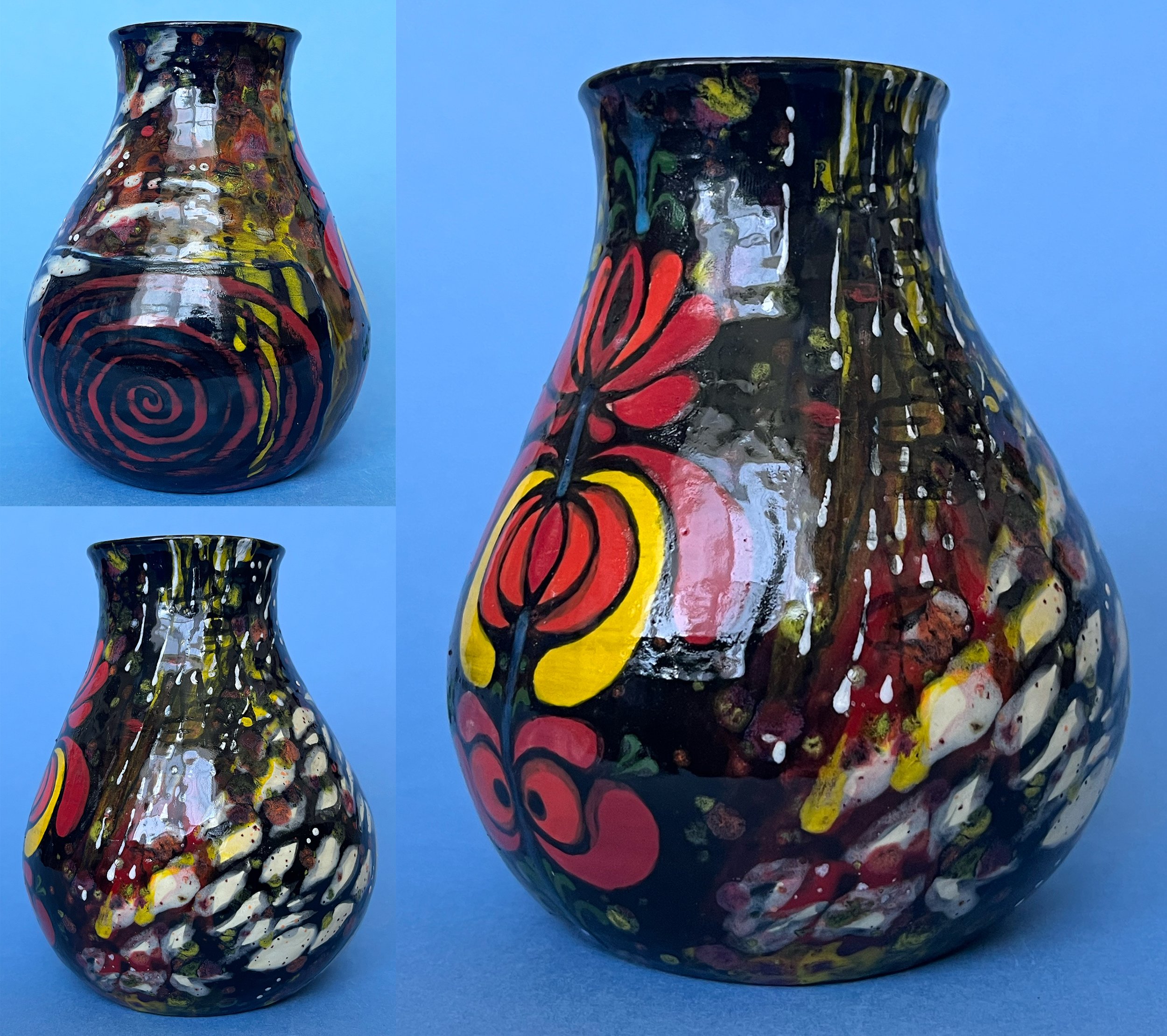 part of a series inspired by Michael Lucero, this pot was thrown on the wheel and combines elements of my slavic heritage, futuristic motifs, and depictions of my favorite artworks: in this case featuring a detail based on Peter Paul Rubens' "Fall of the Damned."